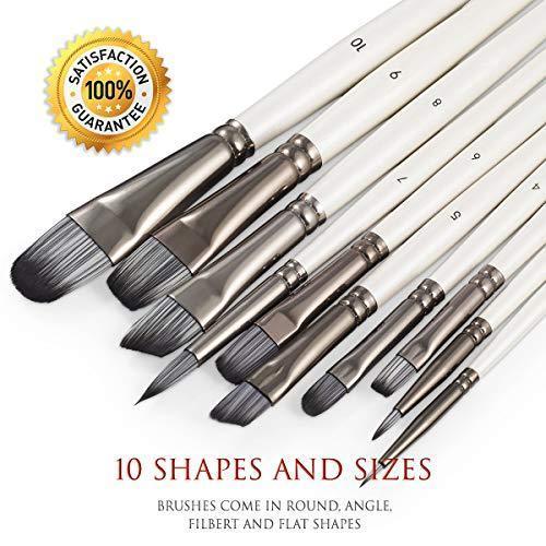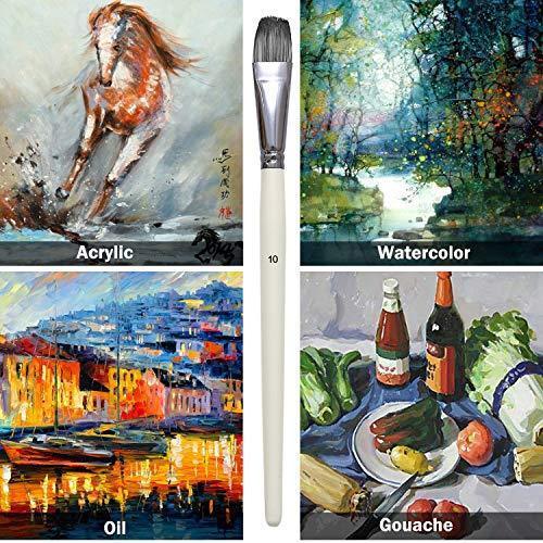 MEETS ALL PURPOSE PAINTING NEEDS: Set of 10 brushes in various sizes comes with (2) angle brushes, (2) flat paint brush sizes, (3) filbert paint brushes, (2) round paint brush sizes, and (1) rigger. These paint brushes are ideal for watercolor, oil, acrylic painting, body - face painting and paint by numbers for adults. Great gift for your kids, friends, beginners, artists or anyone who have interest in painting.