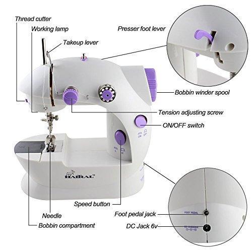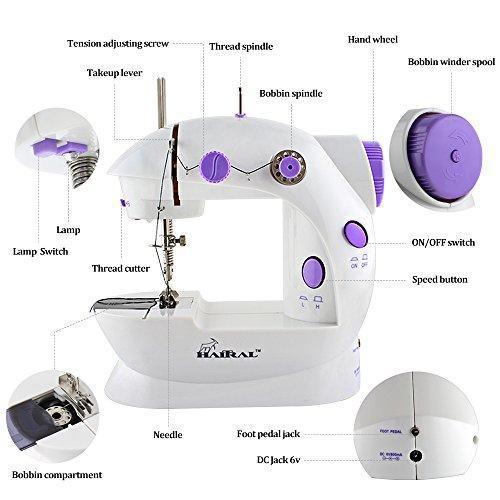 HAITRAL Mini Portable Sewing Machine with Light and Foot Pedal Adjustable Speed