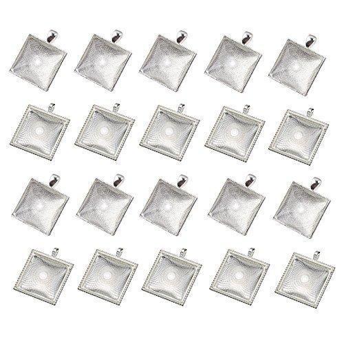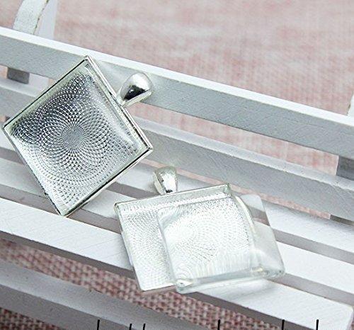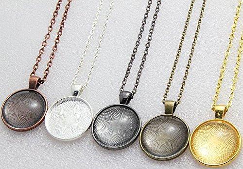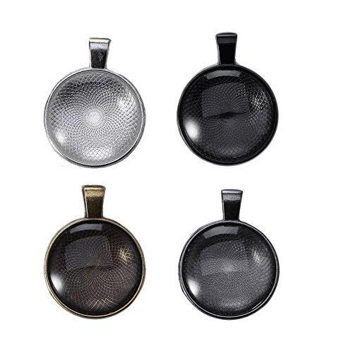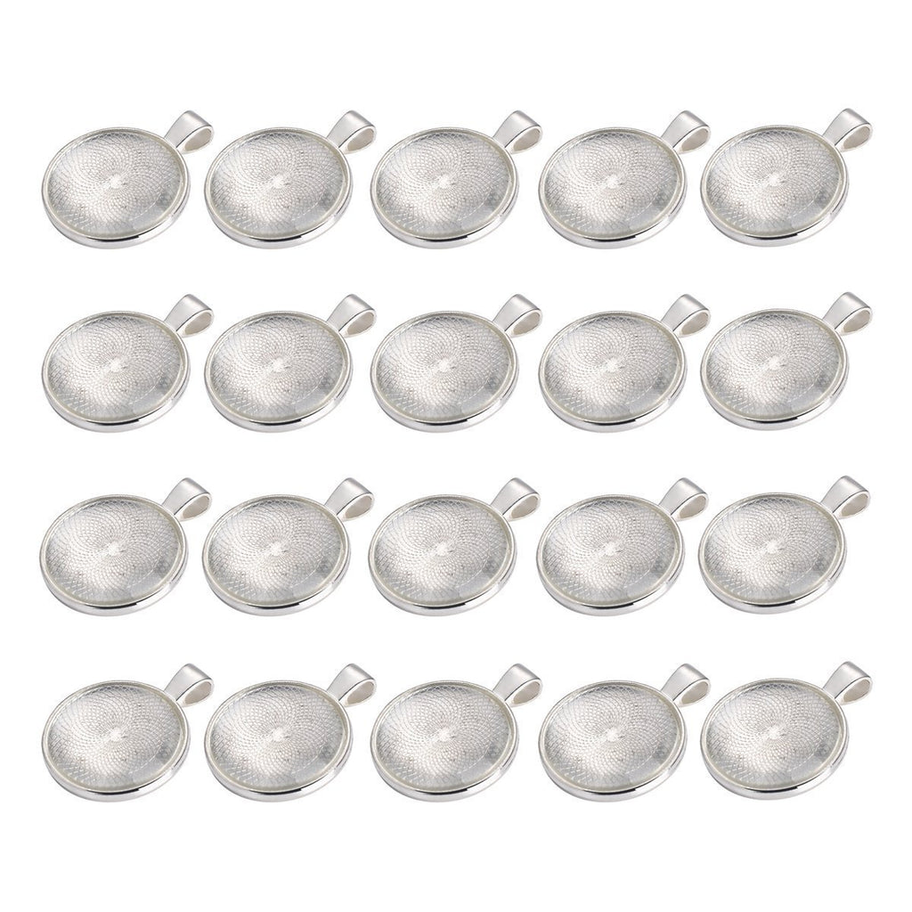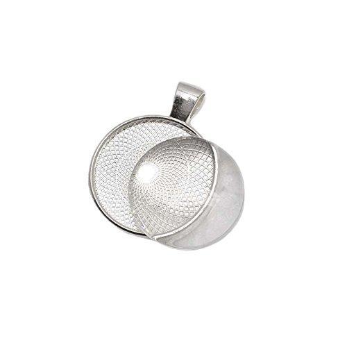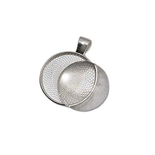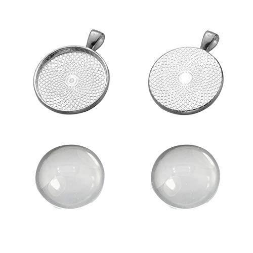 Miraclekoo 20 Set Silver Plated Round Bezel Pendant Trays with Glass Dome Tiles Cabochon 25 mm Blanks Cameo Bezel Cabochon Settings