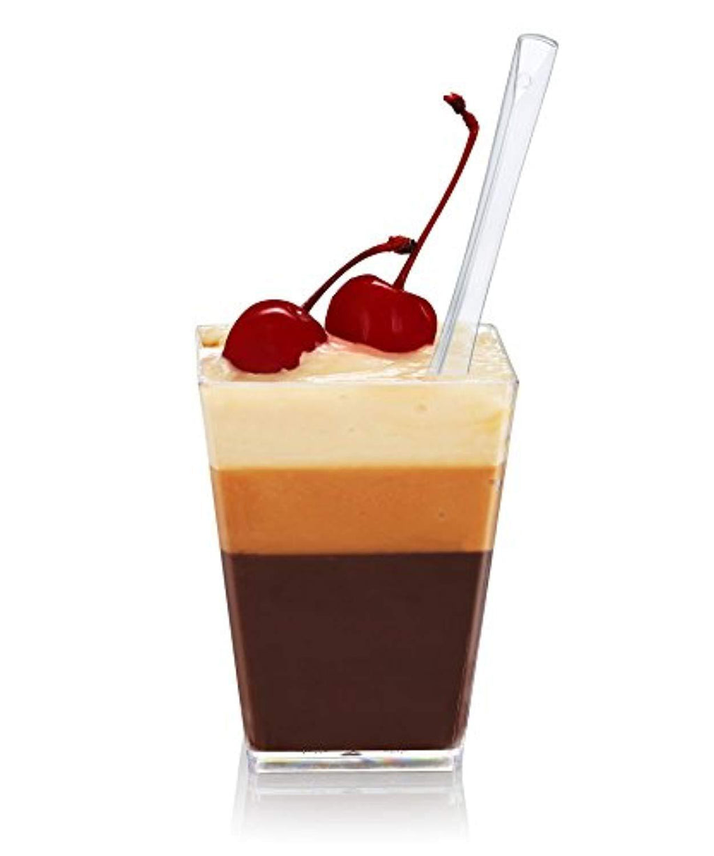 - BEAUTIFUL SERVING DISH FOR PARTIES AND EVENTS: A simple way to make any dessert look professional. Impress your party guests and friends with petite desserts that look catered and absolutely delectable in these square plastic dessert cups. Serve up anything from chocolate mousse, to pudding, to parfaits to jello shots--a great serving dish for all your parties