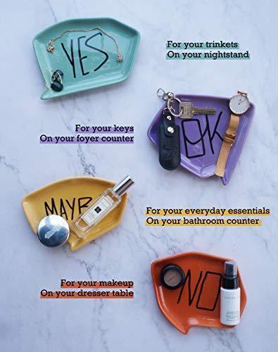 // ORIGINAL DESIGN & ATTRACTIVE GIFT //: An unique attitude saying collection of YES NO MAYBE OK on your dish to enlighten your day, ceramics Appetizer/Dessert Plate Set of 4, around 6-3/8 x 5 " each. The perfect gift for your loved ones on special occassions such as house warming, birthday or anniversary!