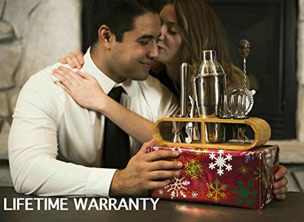 - FOOD GRADE STAINLESS STEEL: Because this bar set is used in professional bars as often as someone’s home bar, it’s made from anti rust SS304 & SS430 Stainless Steel, and WATERPROOF anti-bacterial bamboo. All bar accessories are tested for both durability and mirror shine, and come backed with our Lifetime Warranty.