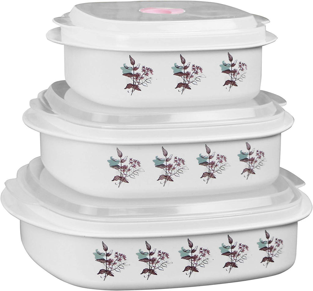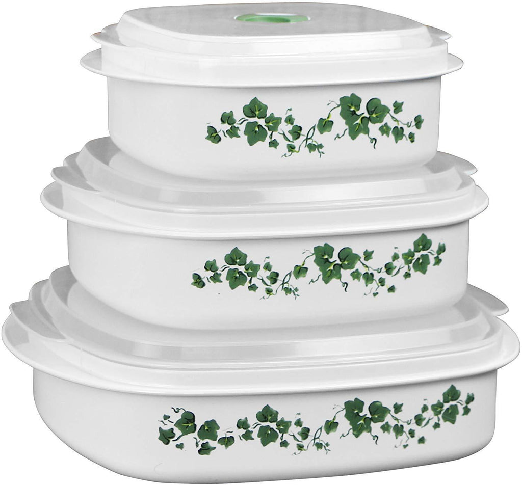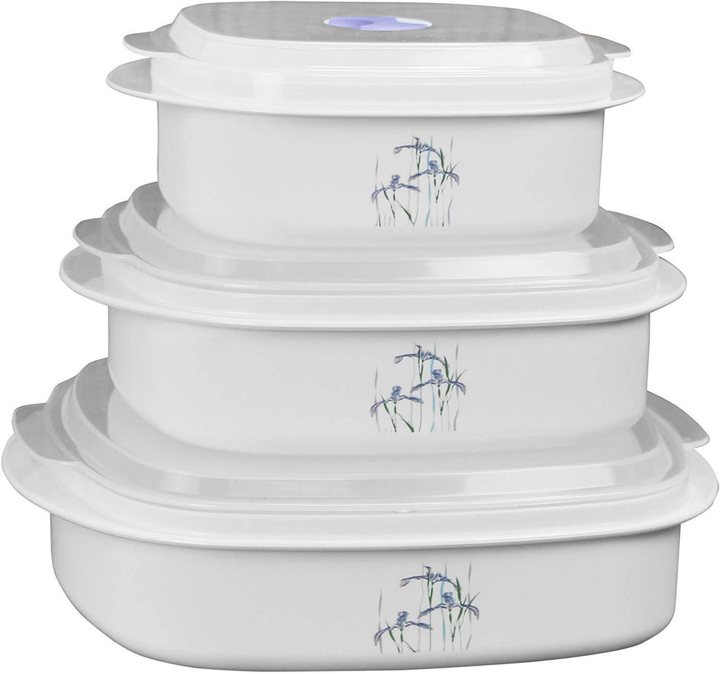 • Each container is decorated with the popular Corelle pattern, Splendor, to match your dinnerware or kitchen décor; dishwasher safe