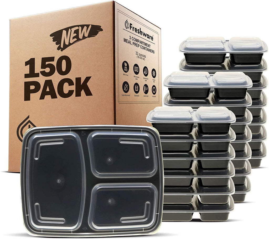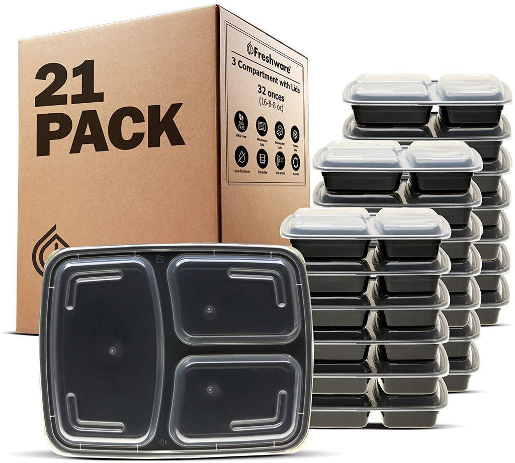 A COMPLETE MEAL IN ONE BOX + PORTION CONTROL: This 15-Pack set of Bento Boxes features 3 different compartments so you can freeze or take with you a complete meal just in one container. Use them for your main course, salad and dessert and enjoy your meal everywhere, hassle free. Each meal prep container can store a total of 32oz (16-8-8 oz) which are the perfectly controlled portions to stay full, yet fit and healthy!