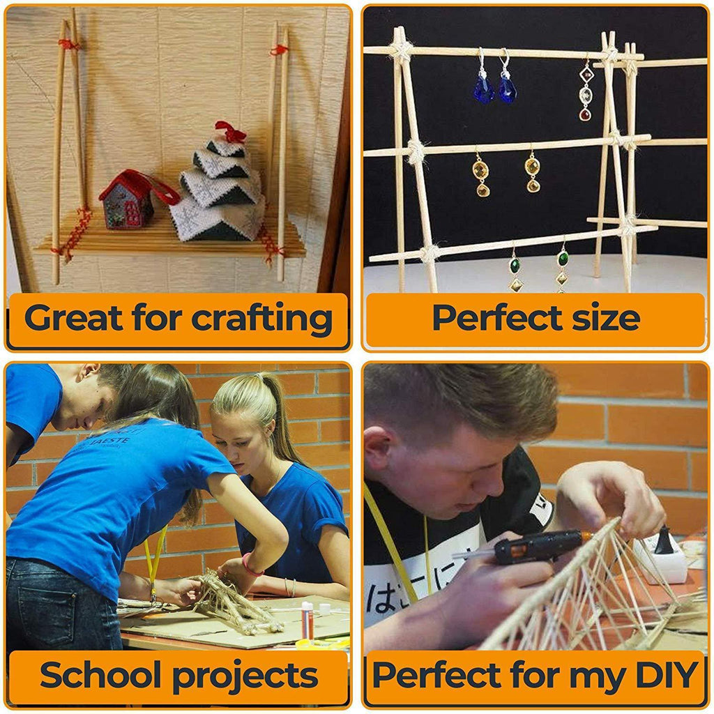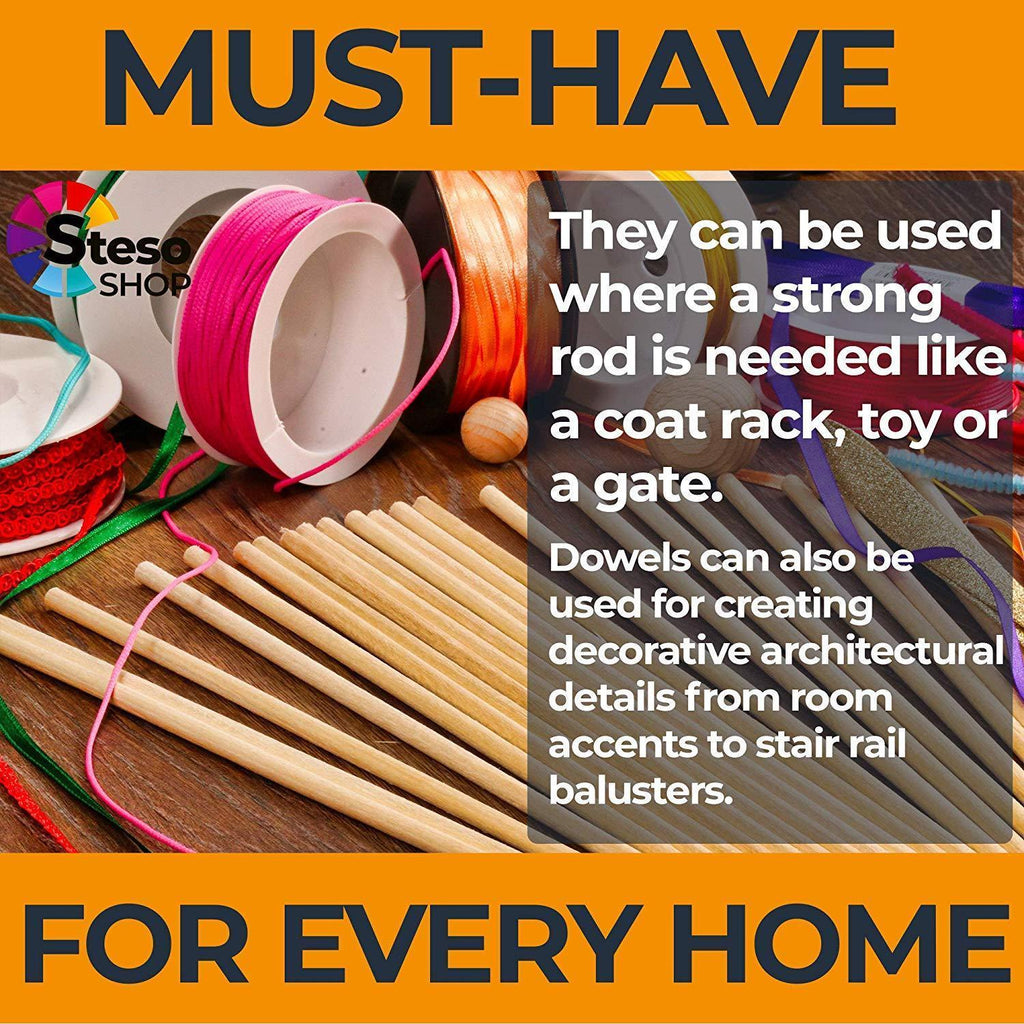π The set includes 100 pcs Wooden Dowels for Craft. Size: Length 12inches - Diameter: 3/16 inch Dowel Rods. Made of high-quality natural wood.