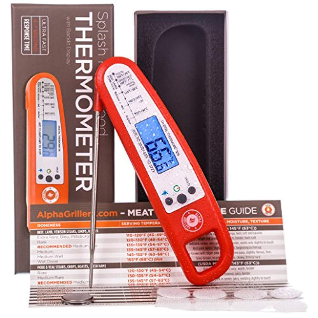 Instant Read Meat Thermometer For Cooking And Grill. UPGRADED WITH BACKLIGHT AND WATERPROOF BODY. Best Ultra Fast Digital Kitchen Probe. Includes Internal BBQ Meat Temperature Guide