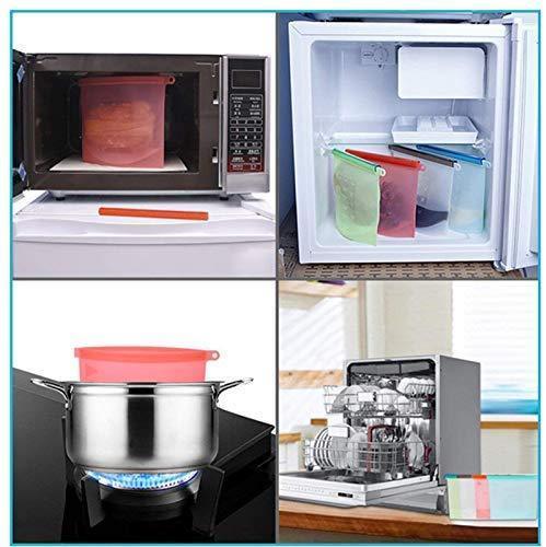 Directly reduce the amount of plastic in your house with these reusable silicone food storage bags.Great Heat and cold resistant, temperature resistant -40℃~240℃.Safely use in the dishwasher, freezer, microwave, oven or boiling water.(DO NOT HEAT SLIDER BARS).