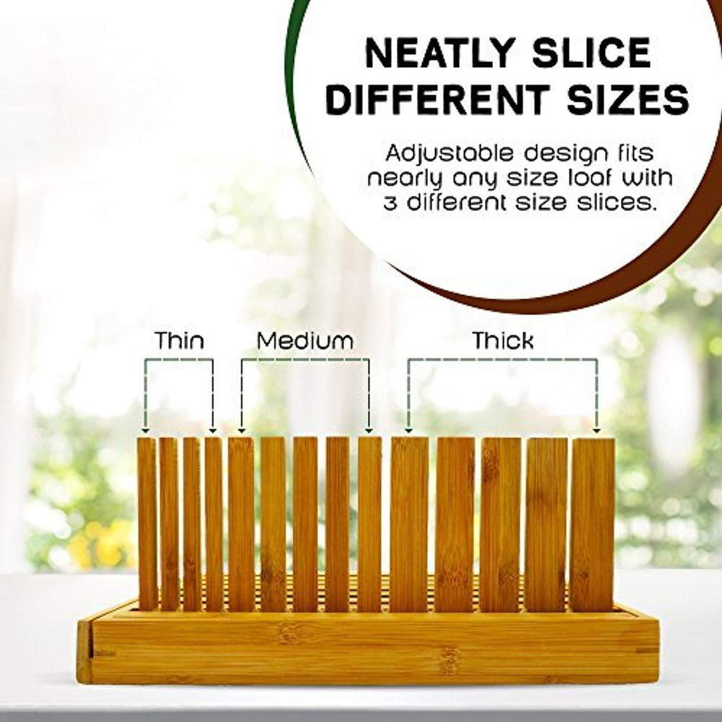 - ➤ DURABILITY: We have used the highest quality bamboo wood in manufacturing our bread slicer guide which is natural and does not contain any harmful bacteria in it. Solid materials, smooth finish, compact design makes it perfect for everyday use.