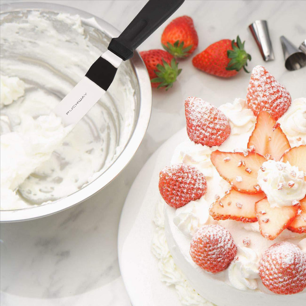 TWO PROFESSIONAL CAKE DECORATING SPATULAS: Our offset spatula set comes in two different sizes: 6" - 8" blade, This is your best choice to decorate a caker perfectly.