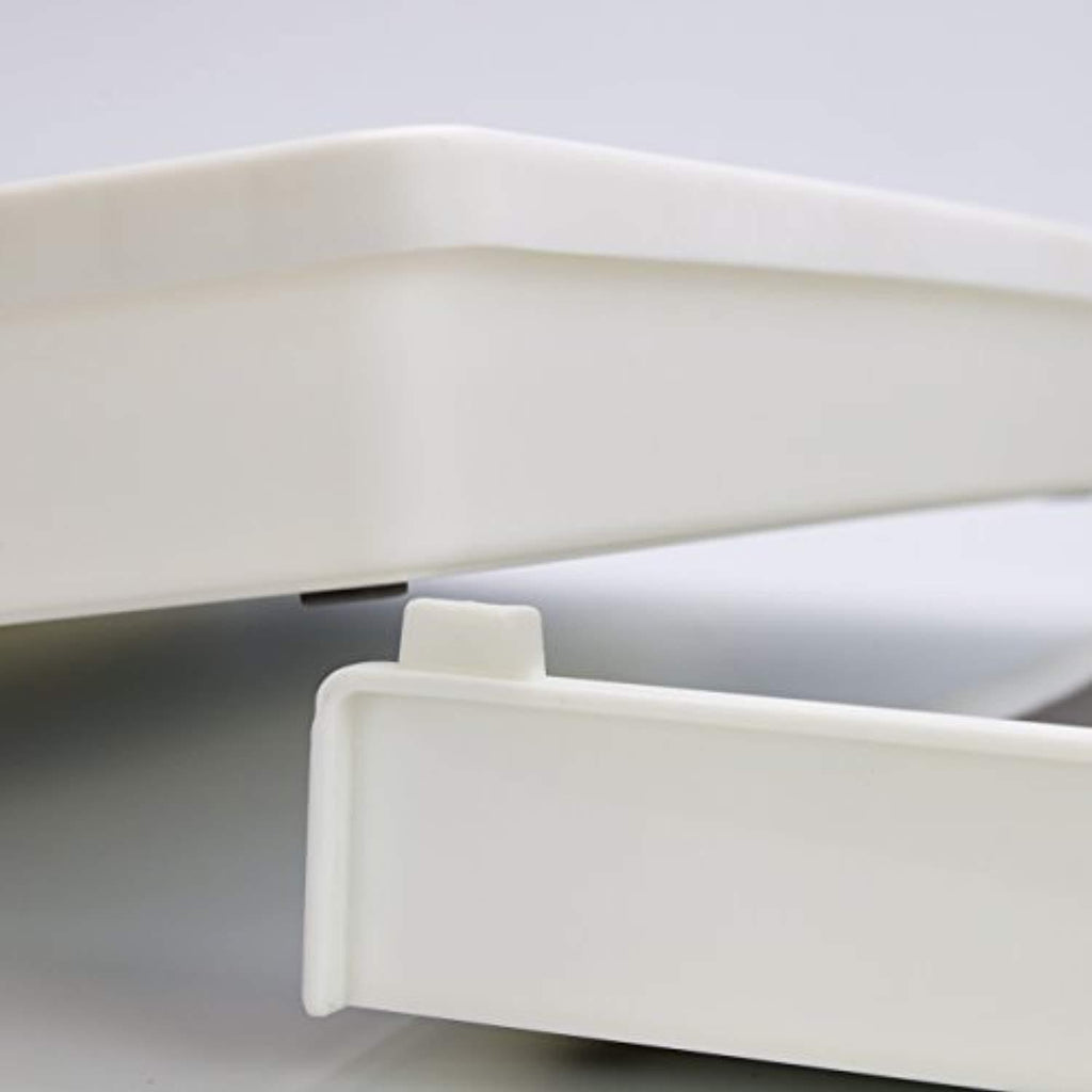 - CONVENIENT DESIGN — Has 5 total sections — Made of durable plastic — White with gray interior — Soft rounded corners — Tray lined with soft grip material to keep flatware in place — Non-slip rubber feet to prevent shifting — Easy to clean — Dishwasher Safe — Entire Unit Measures approximately 23.75” L x 16” W x 2.12” H