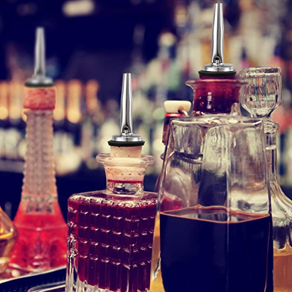 - PREMIUM QUALITY STAINLESS STEEL: Our bottle spout pourers are made with heavy duty 18/8 stainless steel that is corrosion and stain resistant. The ingredients of the liquor will never damage these metal bottle pourers, so feel free to use them daily.