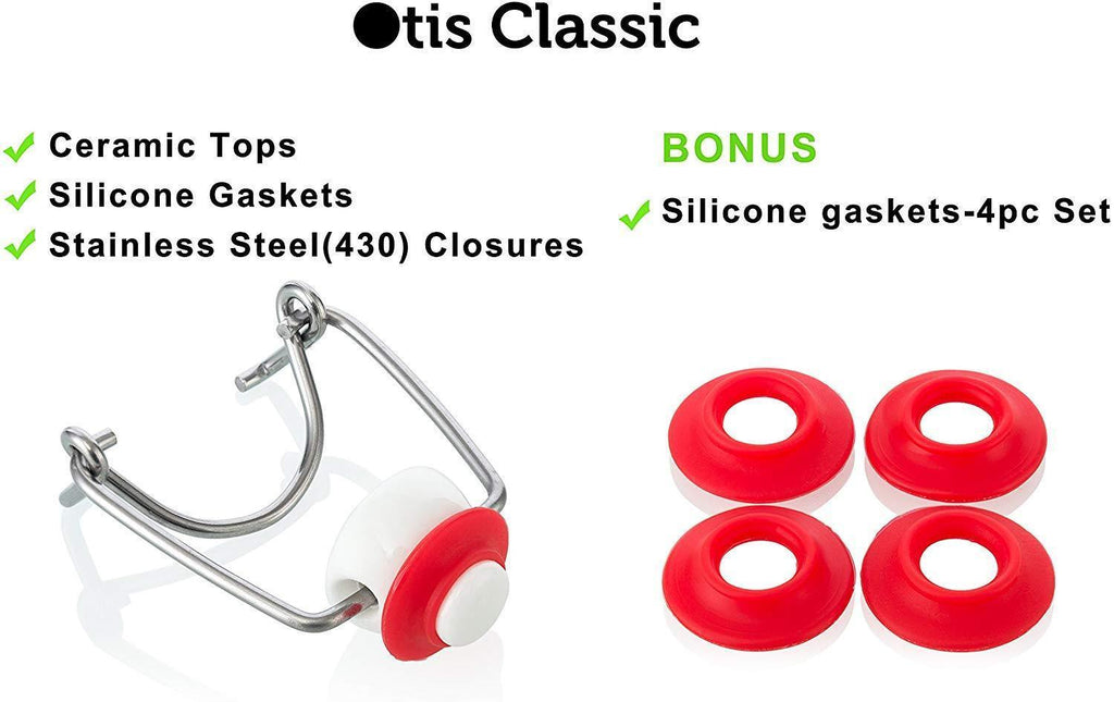 Swing Top Glass Bottles 32oz / 1 Litre - CERAMIC TOPS - Giara Glass Bottles With Stopper Caps - Flip Top Water Bottles - Clear [4pk Set] by Otis Classic