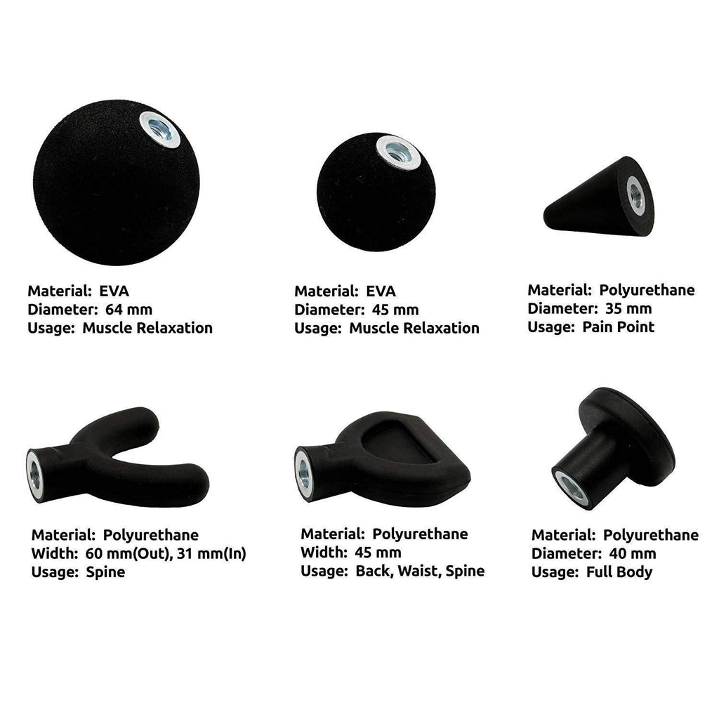 - -INCLUDE: 6 pcs massage heads (include 2*spherical head, 1*gimlet point head, 1*T-shape head, 1*U-shape head and 1*shovel shape head) + 4 pcs connecting shanks(include 2*Standard shank, 1*non-standard short shank, 1*Extension shank).
