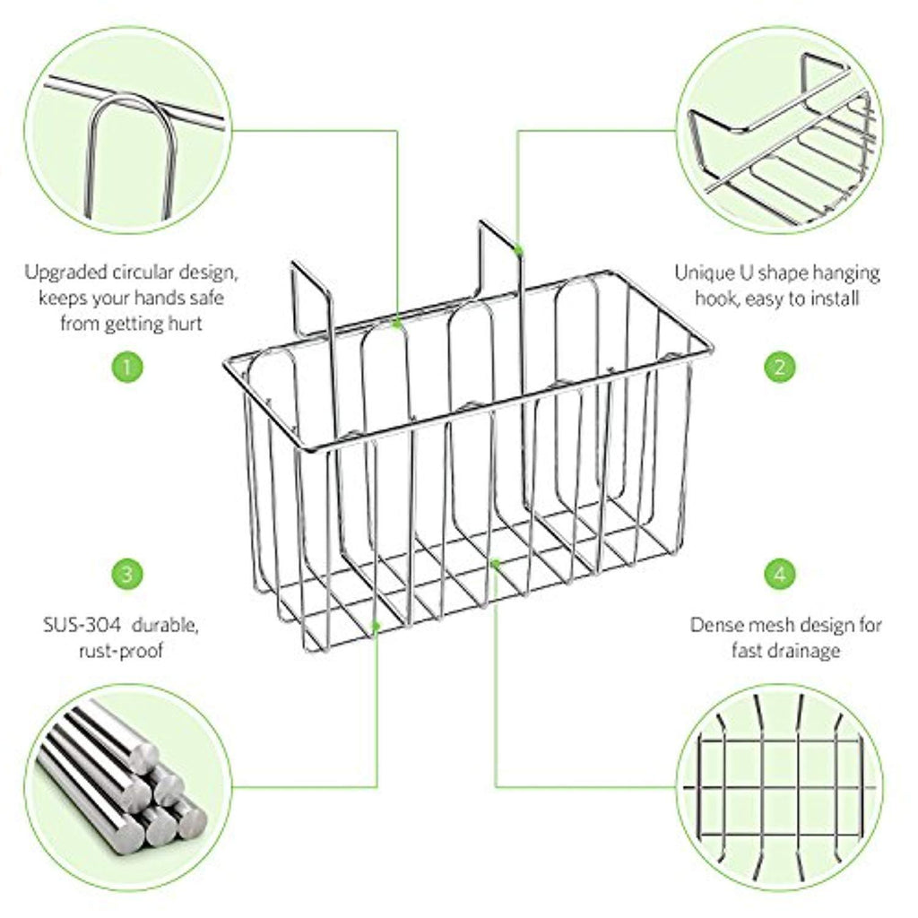 • ♥ DURABLE MATERIAL - Made of premium SUS-304 stainless steel, this sink sponge holder is extremely durable and will not rust (even in the water).
