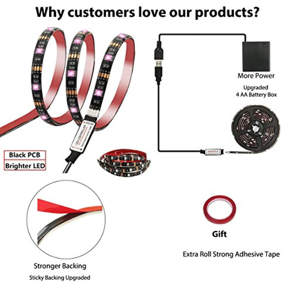 - USB Cable is included for long term use.With USB cord,you can connect it to your TV,laptop,USB adapter,power bank for multi purpose.Best Choice for TV backlight,perfect accent lighting for your bedroom home decoration and parties