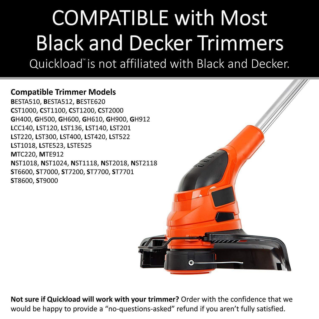 PRO QUALITY – Don’t settle for standard-grade trimmer line. Trim like a pro with this premium 0.065 inch diameter line that easily cuts through grass and even thick weeds. Note: Wear eye protection and long pants when using this product to avoid injury due to flying debris. COMPATIBLE with most Black and Decker trimmer models including BESTA510, BESTA512, BESTE620, CST1000, CST1100, CST1200, CST2000, GH400, GH500, GH600, GH610, GH900, GH912, LCC140, LST120, LST136, LST140, LST201, LST220, LST300, LST400, LST420, LST522, LST1018, LSTE523, LSTE525, MTC220, MTE912, NST1018, NST1024, NST1118, NST2018, NST2118, ST6600, ST7000, ST7200, ST7700, ST7701, ST8600, and ST9000. MISSION CABLES AND QUICKLOAD ARE NOT AFFILIATED WITH BLACK AND DECKER.