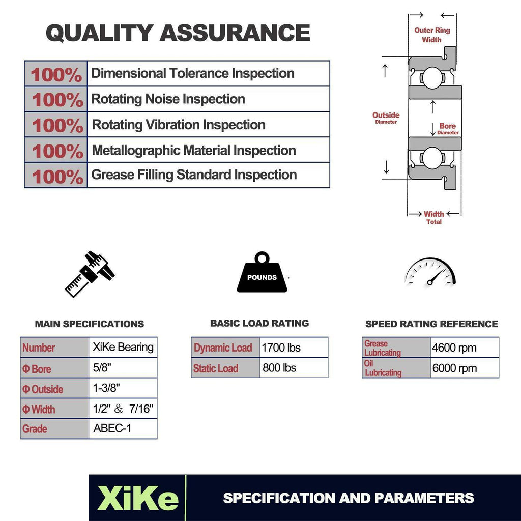 XiKe 4 Pack Flanged Ball Bearing ID 5/8" x OD 1-3/8", Lawn Mower, Wheelbarrows, Carts & Hand Trucks Wheel Hub for Suitable, Replacement for Snapper, Stens, JD, Snapper, MTD, Marathon & AYP Etc.