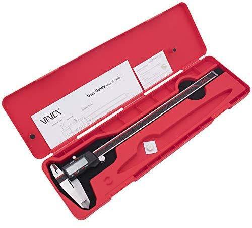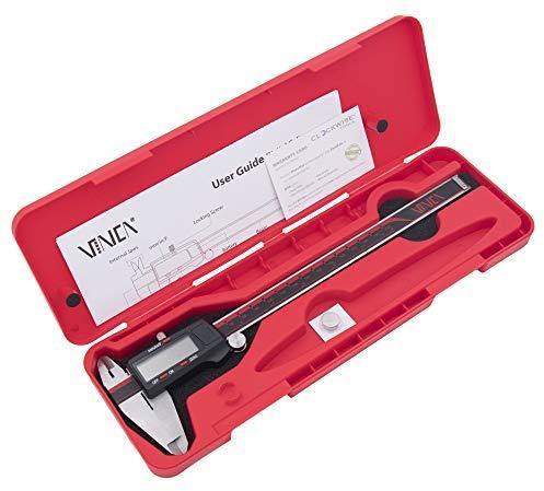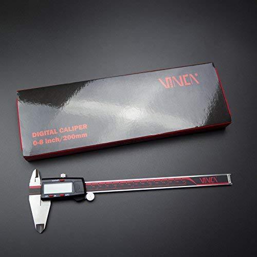 VINCA DCLA-0605 Quality Electronic Digital Vernier Caliper Inch/Metric/Fractions Conversion 0-6 Inch/150 mm Stainless Steel Body Red/Black Extra Large LCD Screen Auto Off Featured Measuring Tool