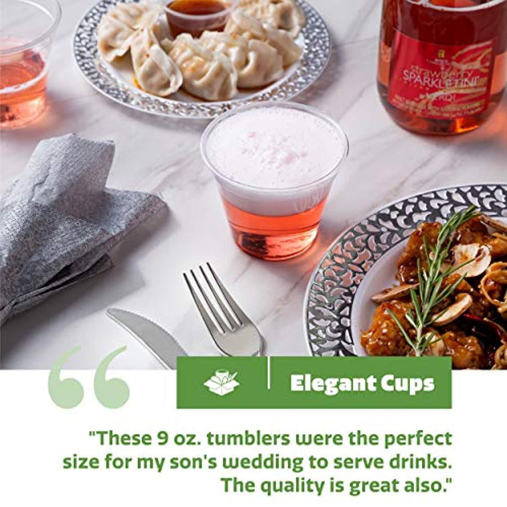 Let's party - These 100 Comfy Package elegant disposable 9 oz plastic cups are great as cocktail cups, party cups, party tumblers or as everyday disposable cups.