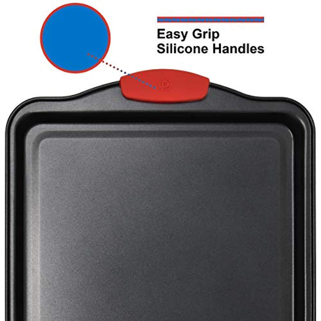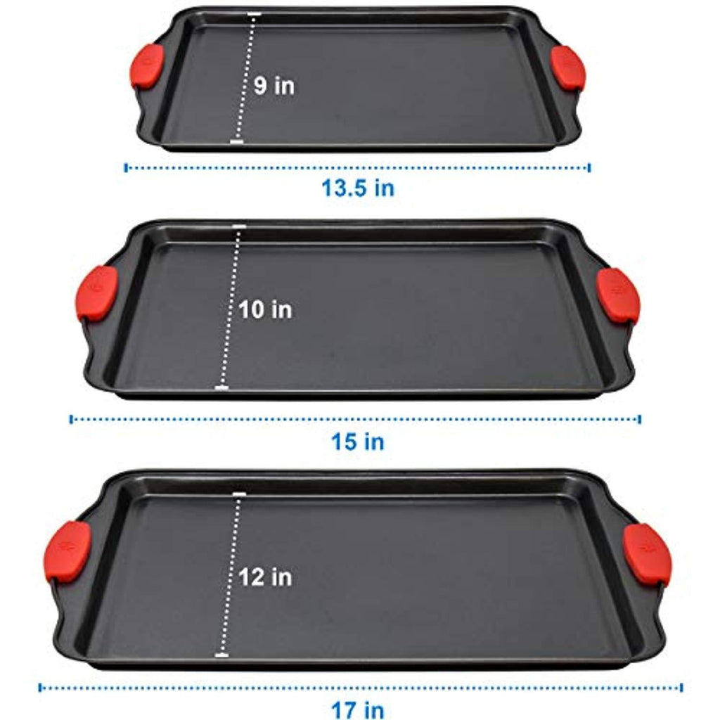 3 Piece Nonstick Bakeware Set, Premium Nonstick Cookie Sheet Pan Set, Professional Steel Pan Baking Sheets With Silicone Handles, Baking Supplies Rectangle Cookie pans 3 Different Sizes By Perlli