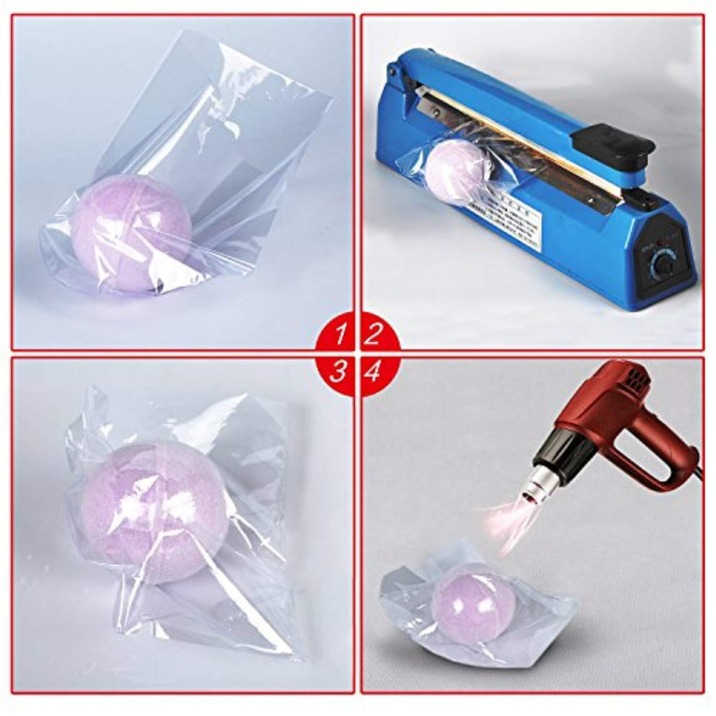 The shrink wrapping bags are perfect for wrapping the bath bombs and handmade soaps, it's also can be used for wrapping the small size items, such as essential oil dropper bottles, cosmetics, gift box.