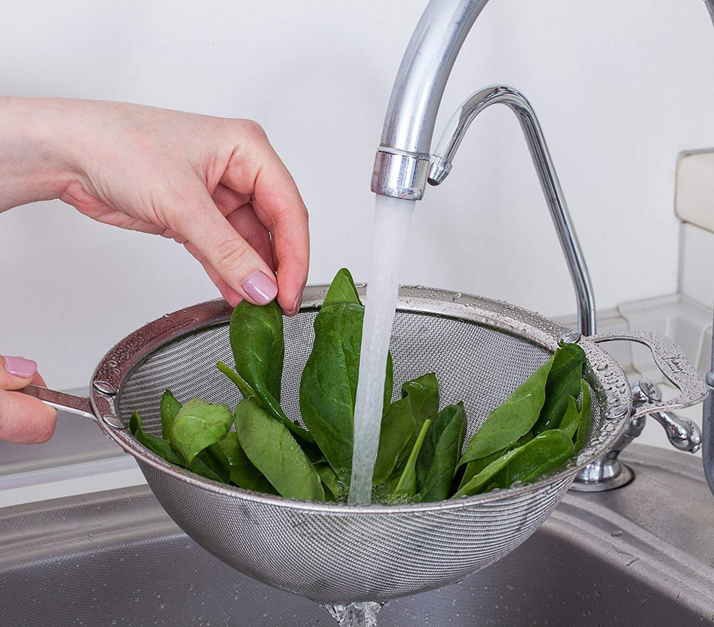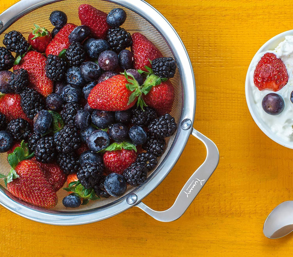 FINEST MESH STRAINER: Never worry about bits of food like rice or pasta slipping through like with most colanders and sieves. The Yummy Strainer’s two layers of tightly woven mesh catches everything while letting only liquids pass.