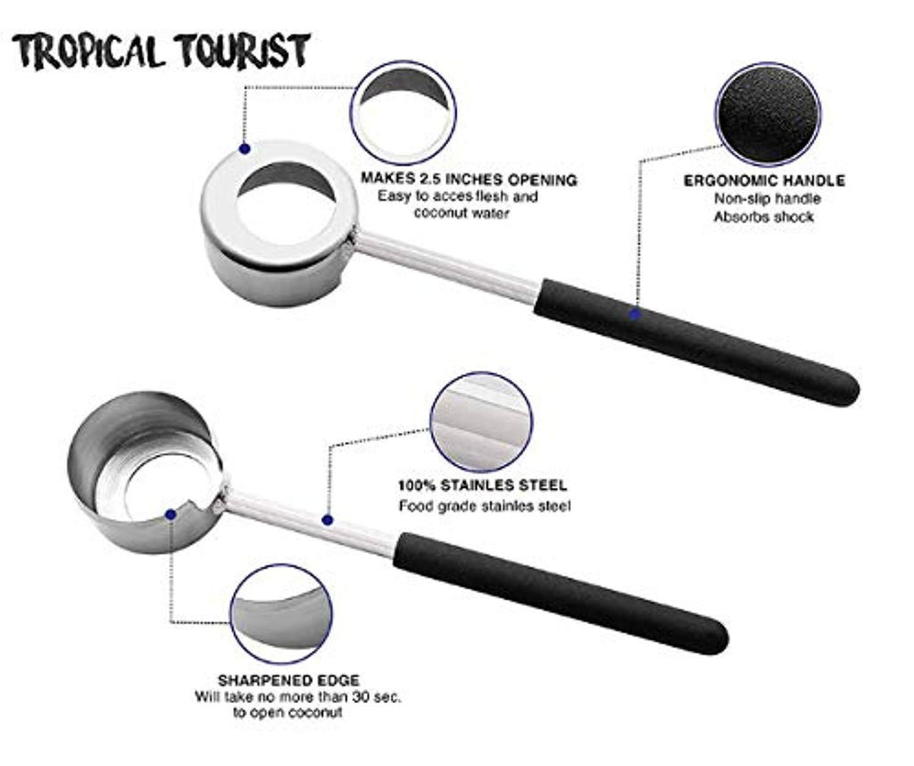 - ✅ HIGH QUALITY food grade stainless steel young coconut opener ensures a perfect hole in every coconut and promote longevity of product. 100% satisfaction guarantee.