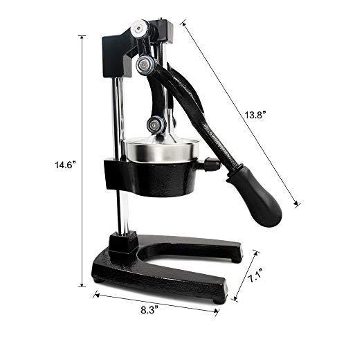 🍹SAVING TIME AND EFFORT - Our hand press juicer designed with ergonomic rubberized handle can withstand 2,300 PSI strength; Uses leverage and gravity to extract the most juice with little effort.