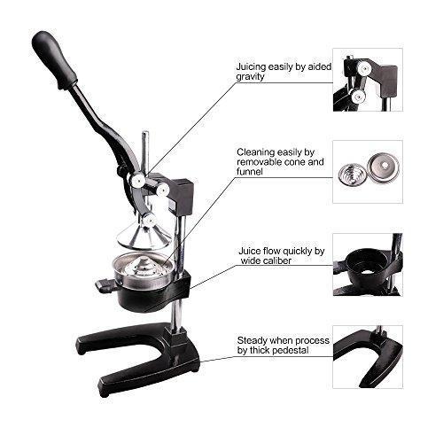 🍹PREMIUM QUALITY - Egofine manual juicer is made of heavy duty cast iron, with FDA proved 304 stainless steel cone and funnel, which ensures 100% safety and hygiene.