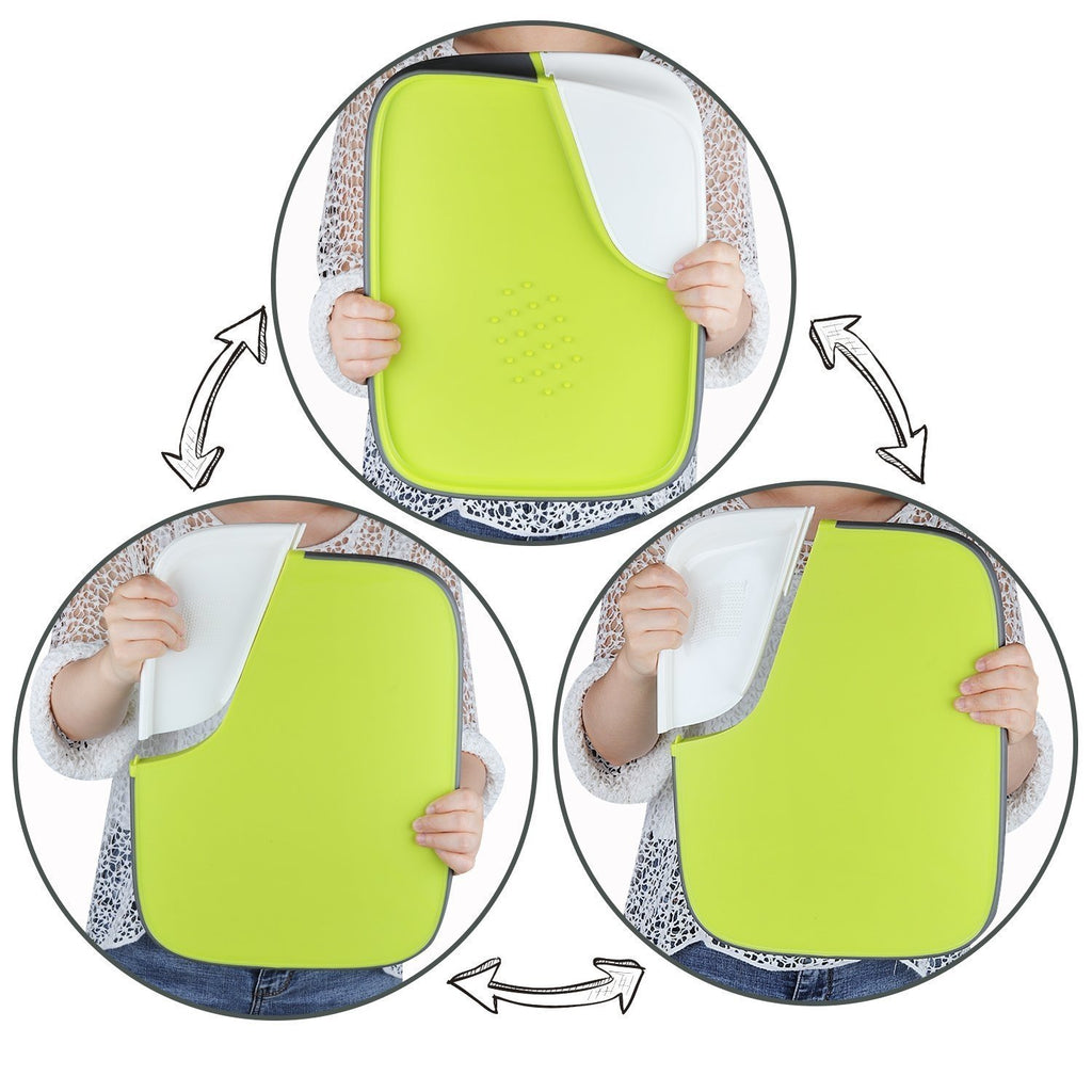 • ♥ Non-slip with rubber cover feet makes cutting stuff much easier and faster, you will like the bumps design which allows you to keep your food stay on the chopping board. Plus, perfect design with detachable scoop for transferring your food to the pan