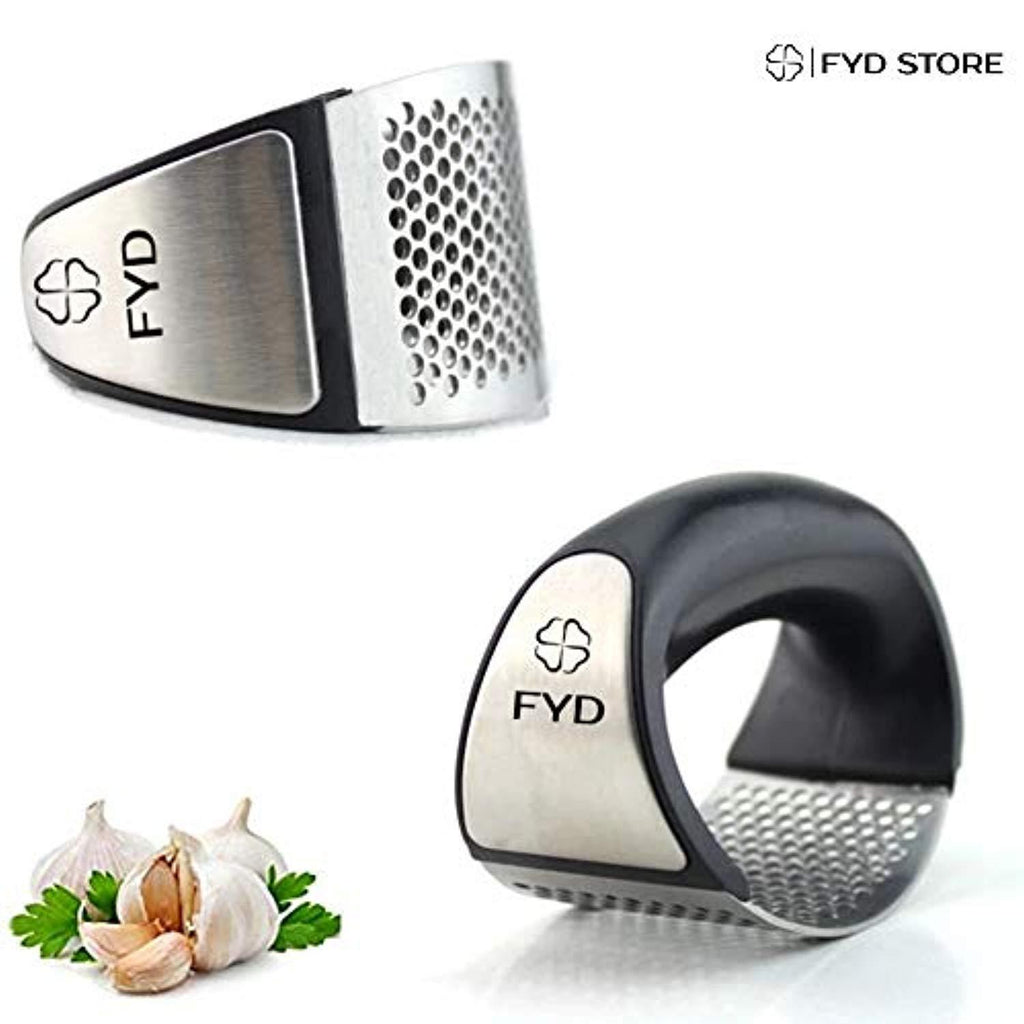 FYD Garlic Press Garlic Peeler Set Stainless Steel NEW DESIGN - Professional Grade, Dishwasher safe. Perfect gift for any occasion