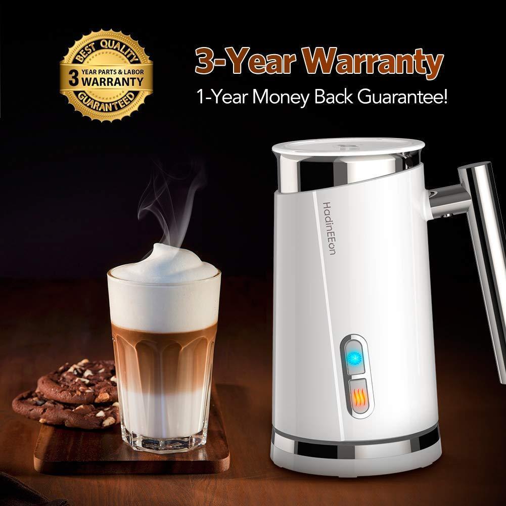 【GET YOU THE MOST CREAMY & FROTHY MILK FOAM】Design for every foamy milk and coffee lover. HadinEEon Automatic Electric Milk Frother guarantees the smooth texture and original taste of frothed and steamed milk, heat up cold milk to 150 Fahrenheit and get you the barista-level foam within 60~100S. HadinEEon Milk Frother Provides the perfect foamy milk for making Latte, Cappuccino and Hot Chocolate.