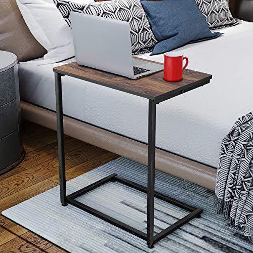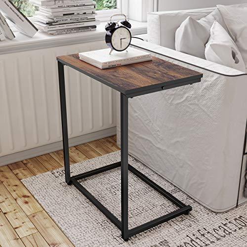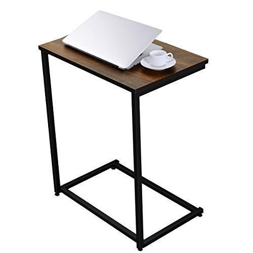 Homemaxs C Table Sofa Side End Table Wood Finish Steel Construction 26-Inch for Small Space