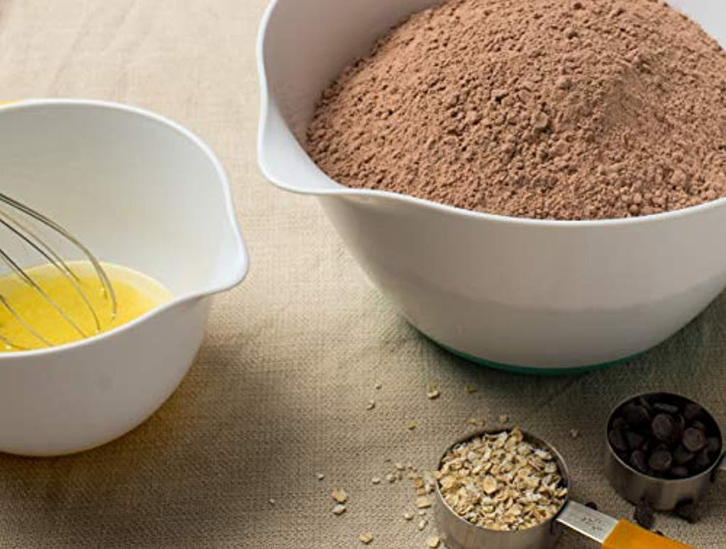 NON-SKID BOTTOM – The non-skid rubberized bottom of the mixing bowls will make your life easy as you could mix your cakes or any other food using an electric mixer or by hand without the risk of slipping or skidding on the table top. Perfect for homes with kids and pets.