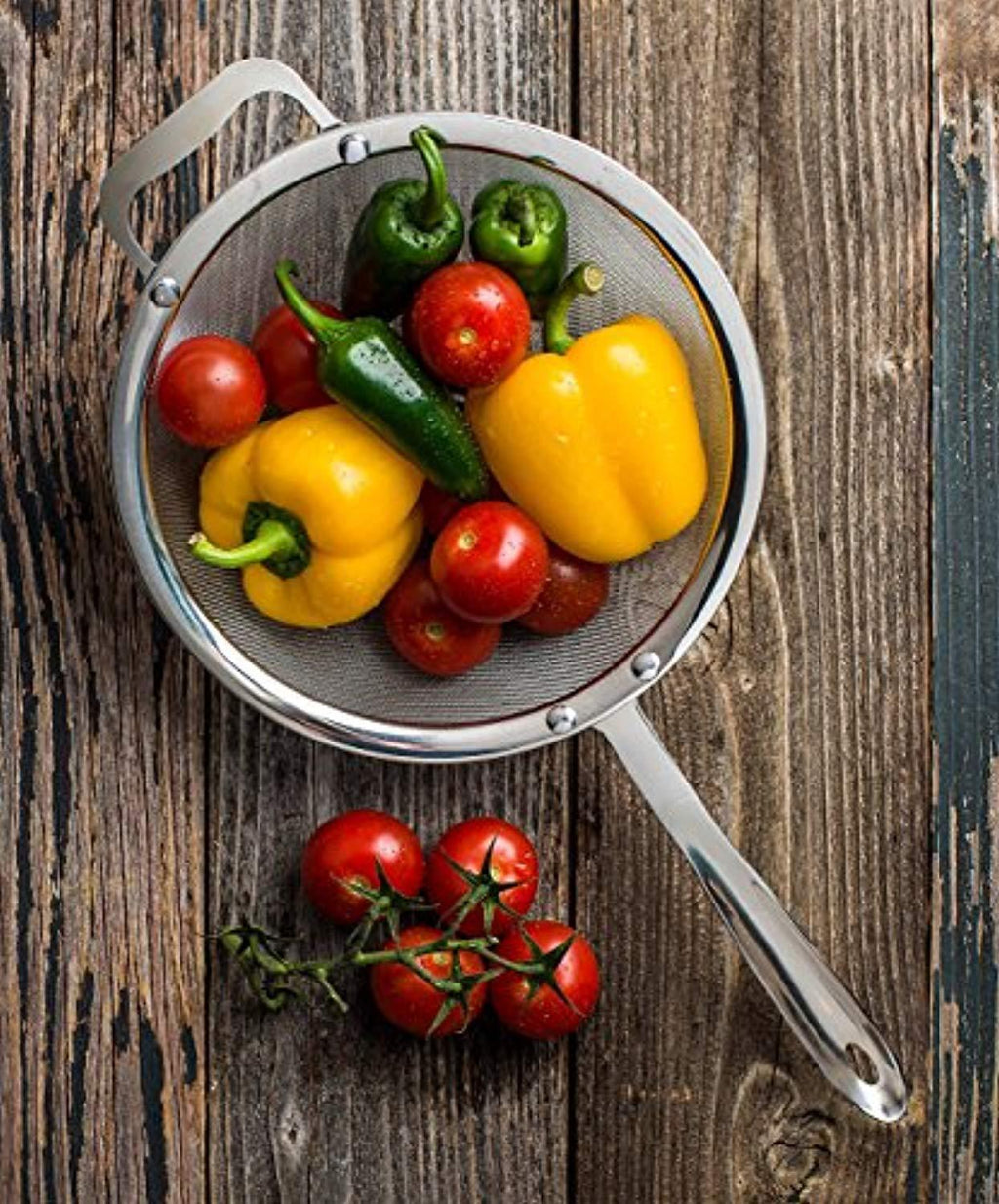 FINE MESH STRAINER: It has a fine double mesh cover for a tighter weave and a stronger hold, to withstand heavier foods.