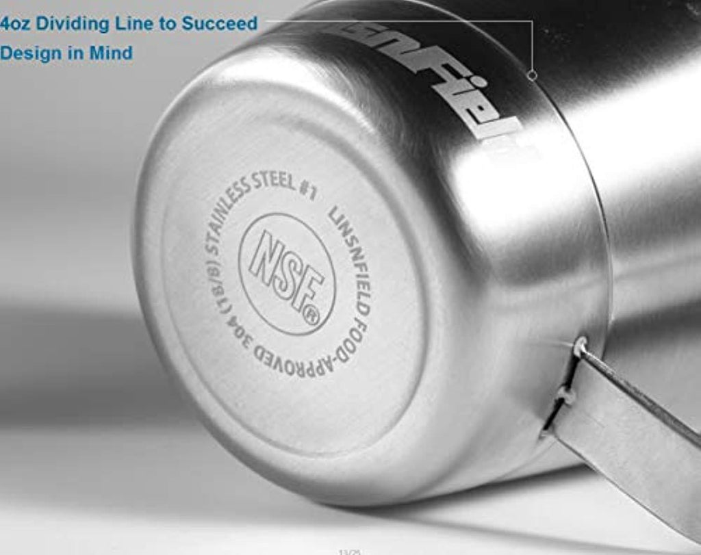 ⭐【The Great NSF - Win 1 of 1000:】Industry-Leading Technology. The 1st and the only milk frothing jug claims for NSF Certificate. The real rust-proof, stain-proof, crash-proof, heat-proof, unbreakable by daily use. Don’t get fooled by cheap KNOCKOFFS AND COUNTERFEITERS 304 or even 201 / 202 stainless steel!!! What food approved, most premium, high quality, the best stainless steel they described are all fake.