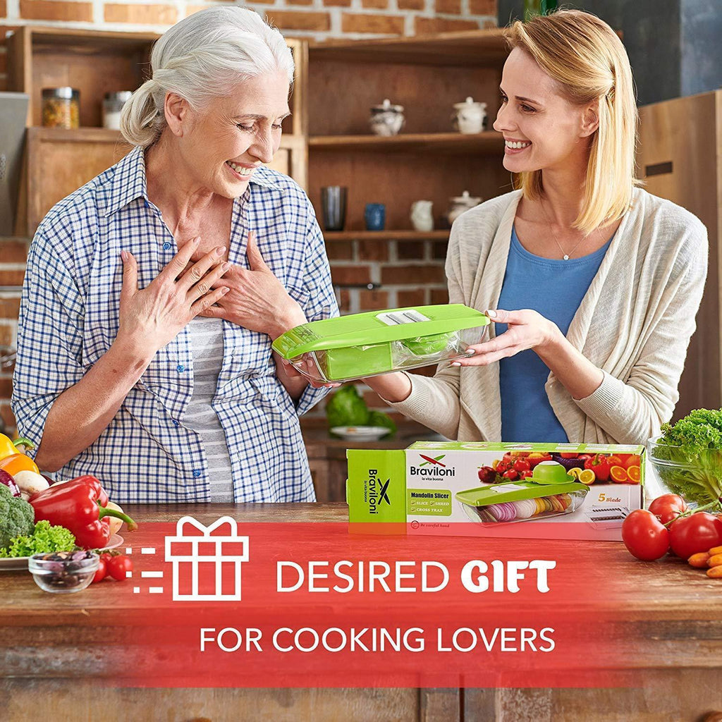 Mandoline Slicer - Premium Vegetable Potato Slicer Grater - Cutter for Tomato, Onion, Cucumber, Zucchini Pasta, Cheese - Julienne Veggie Peeler Chopper - Food Storage, 5 Blades & Hand Protector