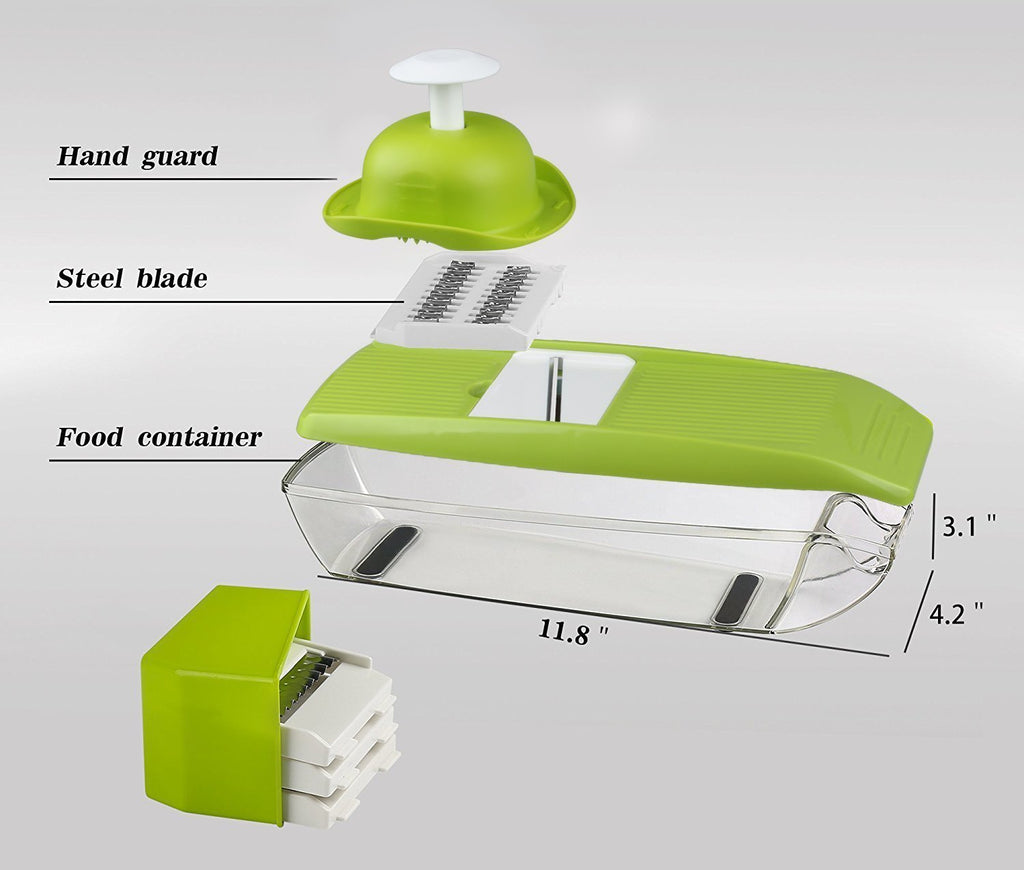✅ save time and effort: This hand-held mandolin slicer will cut your prep time in half, by cutting through potatoes, onions, cheese and vegetables with ease. Space saving, your kitchen will be clean and tidy thanks to the container.