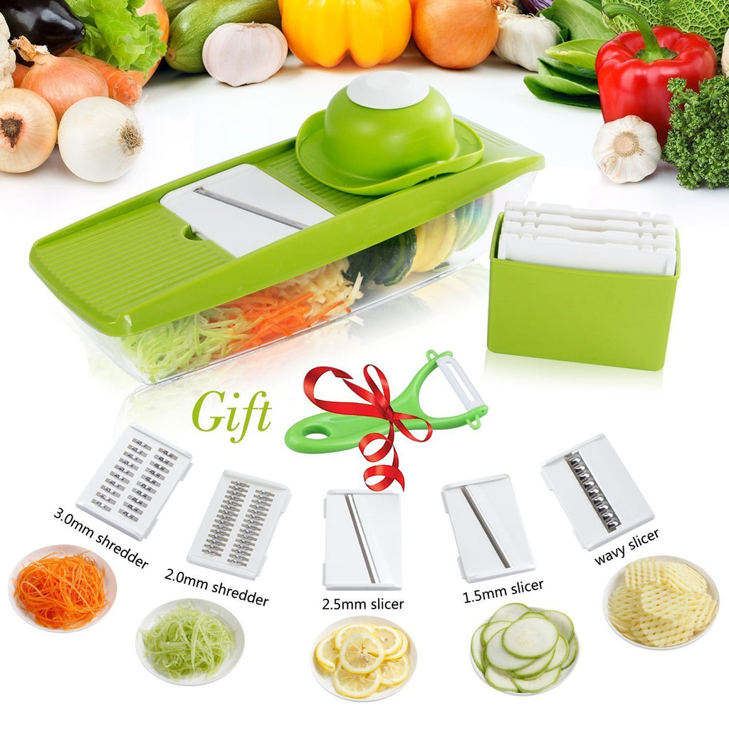 ✅ multitask: 5 interchangeable sharp blades made from high quality stainless steel, You can use it to chop various vegetable or fruits. Blades are easy to change so you don't have to worry about cutting yourself.