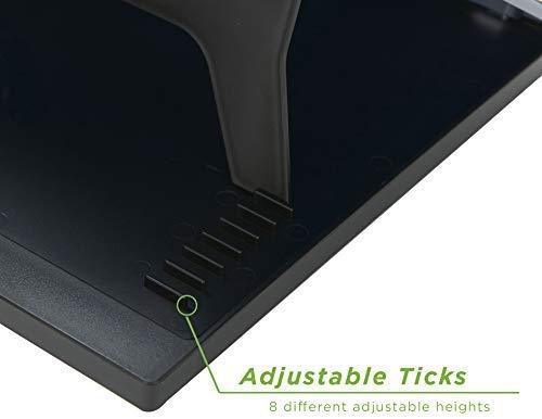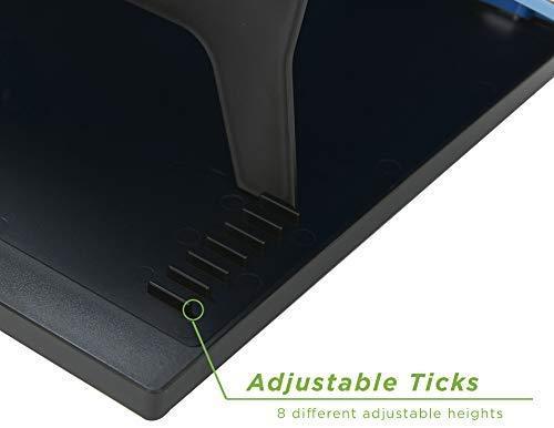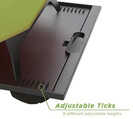 • ADJUSTABLE HANDS FREE LAPTOP TABLE - 8 Angle Options Lock Into Place for Hands-Free Use and Optimal Viewing - Easy Pop Up Lip Holds Bottom of Computer Laptop, Tablet, Book or Drawing Device Steady While in Use.