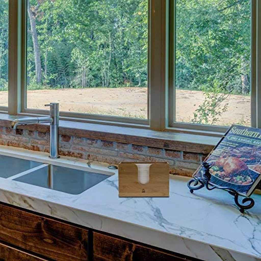 Paper Towel Dispenser Bamboo, Paper Towel Holder Wall Mount & Countertop Toilet Paper Dispenser For Kitchen And Restroom Decor - Holds Multifold Paper Towel, C Fold, Trifold Hand Tissue Napkin