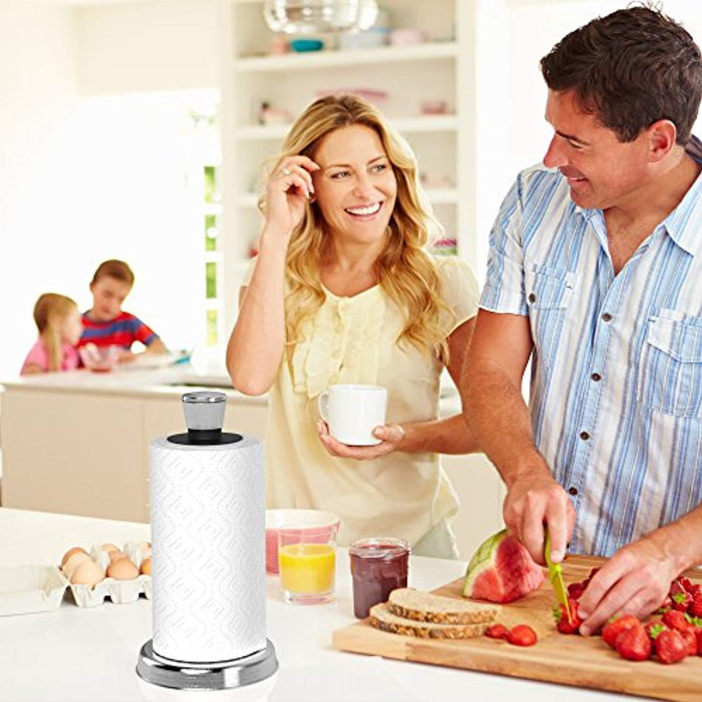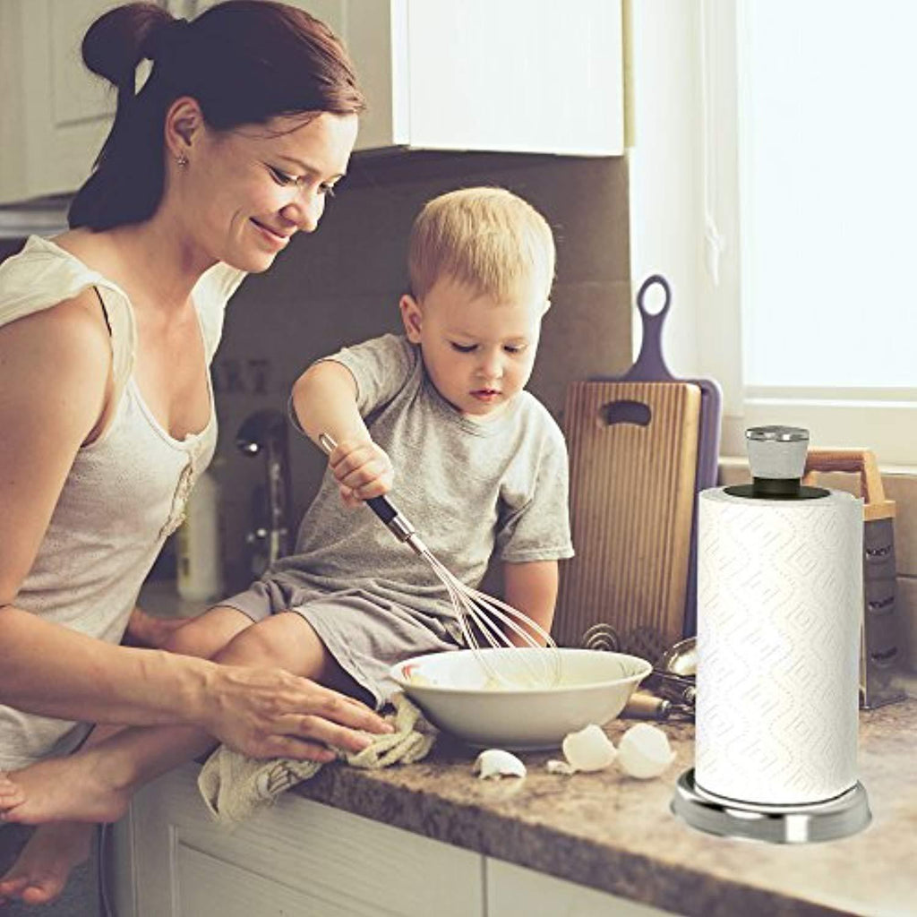 • STABILITY - Our Paper Towel Stand's base has just enough weight to stay stable on your kitchen countertop but not be a hassle to lift and move. Will not stumble if pushed or pulled.
