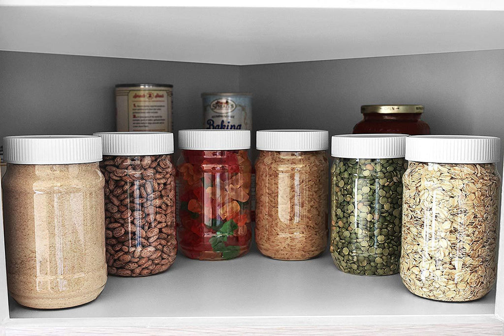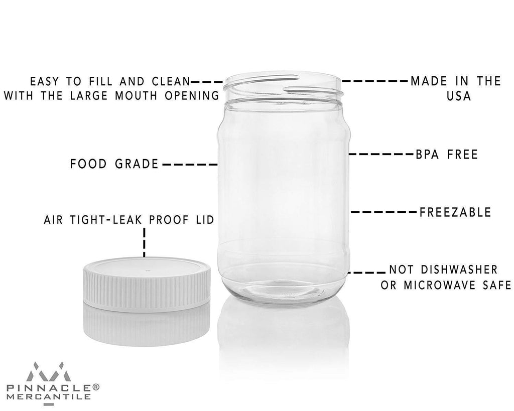 Pinnacle Mercantile Crystal Clear Plastic Jars with Screw on Lids 16 oz Set 6 Wide Mouth