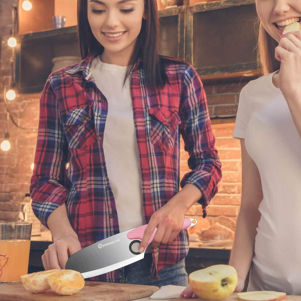 POENSCAE Chef Knife,Kitchen Knife 5.8 Inch,German Stainless Steel Knife with Sharpener,Unique Anti-Slip Hole Design