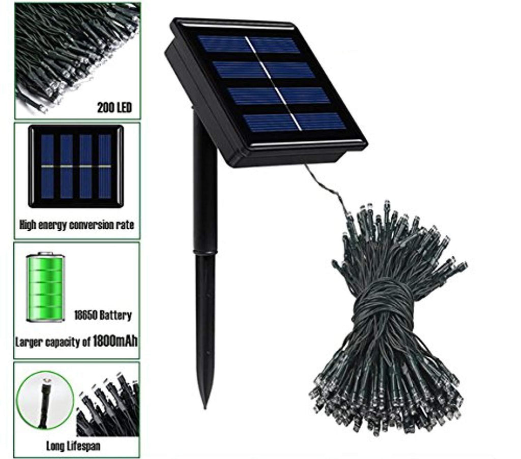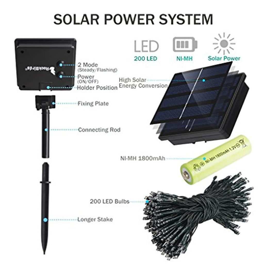 RockBirds Solar String Lights 72ft 22m 200 LED Certified by FCC and Rohs, Outdoor String Lights Waterproof IP65 Decorative Lights for Halloween, Wedding, Outdoor, Homes, Party (Warm White)