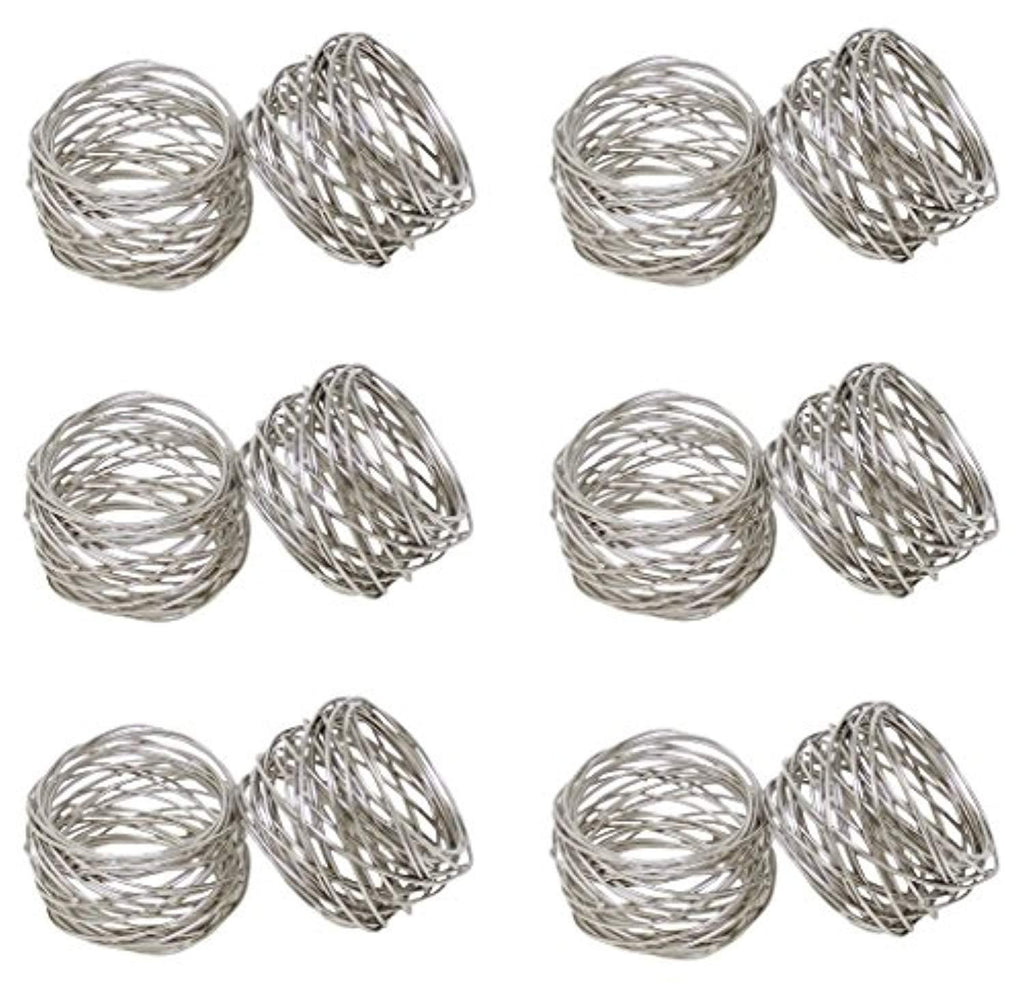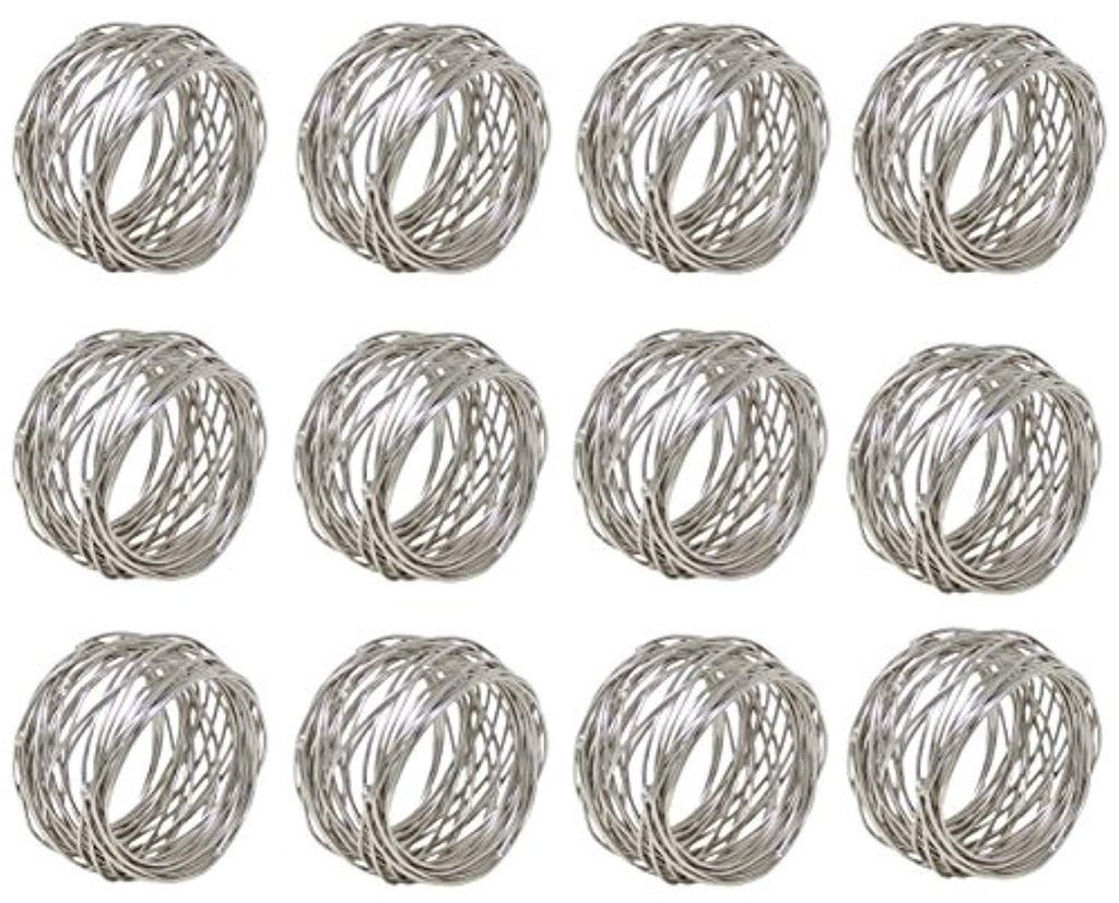 Metal Imported UNIQUE DECORATION FOR DINING TABLE - Put in some extra effort in decorating your table by adding fabric napkin rings and leave your guests impressed while making them feel more special. A little effort put in beautifying your table only adds to the feeling of love. The napkin ring is picture-perfect for parties, weddings, picnics, holidays, Christmas, New Year, Thanksgiving, etc. PERFECT SIZE NAPKIN RINGS - This is a set of 12 napkin rings. Each napkin ring measures approximately 2 inches in diameter and 1.5 inch in height. Our napkin holder is produced by hand with great care for incomparable level of quality to ensure top durability. This napkin ring fit for all kinds of cloth napkins, towels and can be used as dinner napkin rings. Our napkin rings are unique and elegant and will impress every guest at your party. EXCELLENT QUALITY AND MATERIAL - Our flawless smooth alloy napkin rings in silver color let you put together different color napkins to make it cuter, or add a flower with each of them using the napkin ring, and do much more such things. The rings are well made, mid-weight, boast consistent finish, and a high level of attention to details - ideal for both casual & formal settings. ADD PERSONALITY TO EVERYDAY TABLE - Use our carefully crafted cloth napkin rings not only around linen napkins but also around disposable quality paper napkins, and add a personality and visual appeal to your everyday table while making it uniquely yours. Our napkin rings could also save space on your table by holding it in napkin rings. CREATIVE COLOURS & DESIGNS - We have napkin rings (or napkin holders) for a broad range of different table settings available in various colours and designs - silver mesh, gold mesh, wooden ring, copper ring, hammered gold napkin rings, hammered silver napkin rings and diamond napkin rings, metal napkin rings, antique napkin rings, colorful napkinring available in sets of 4, 6 and 12.