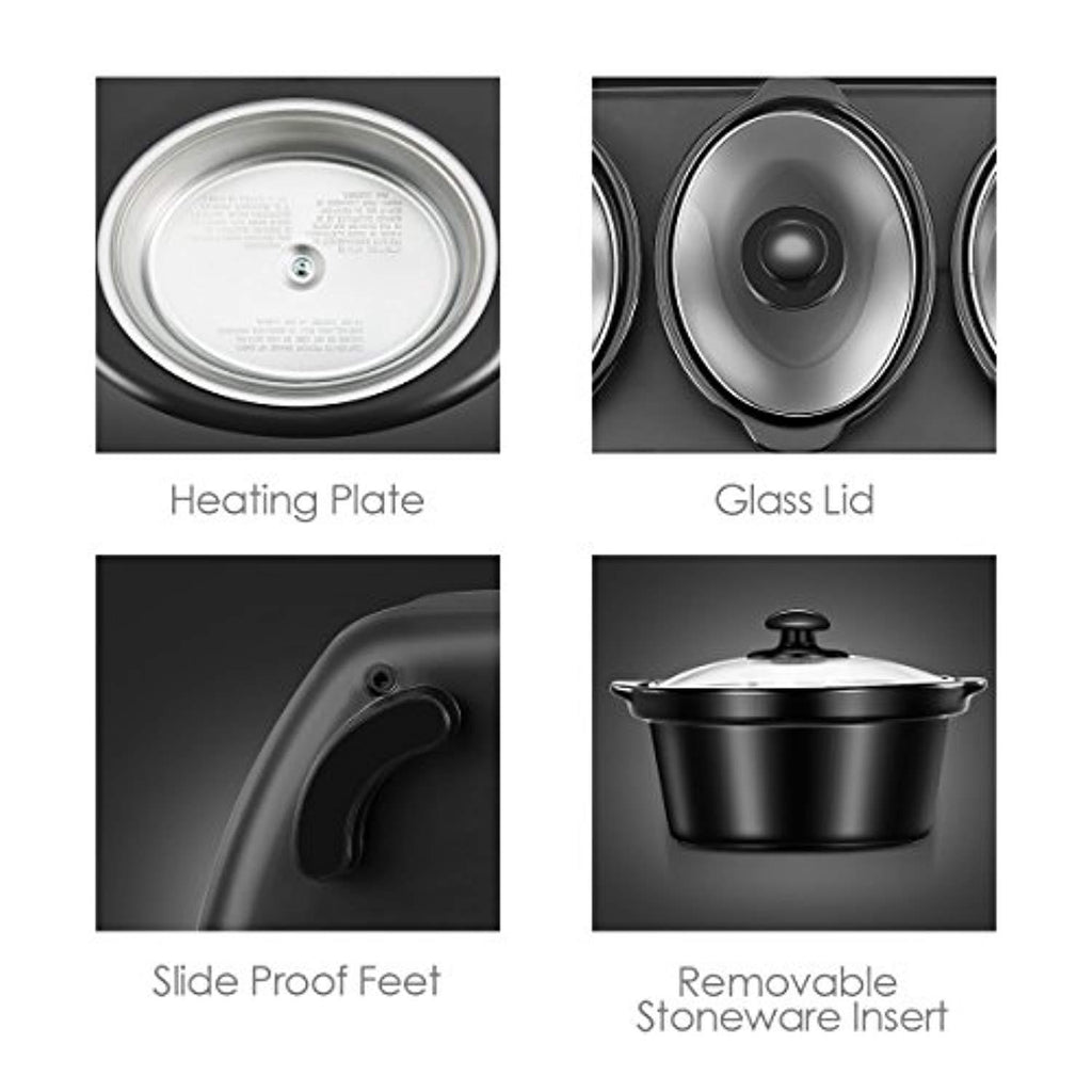 - Three removable 1.5Qt stoneware inserts and powered at 270 Watts