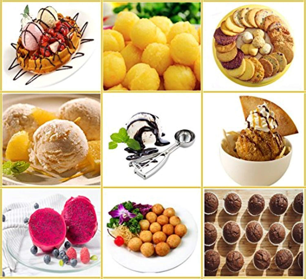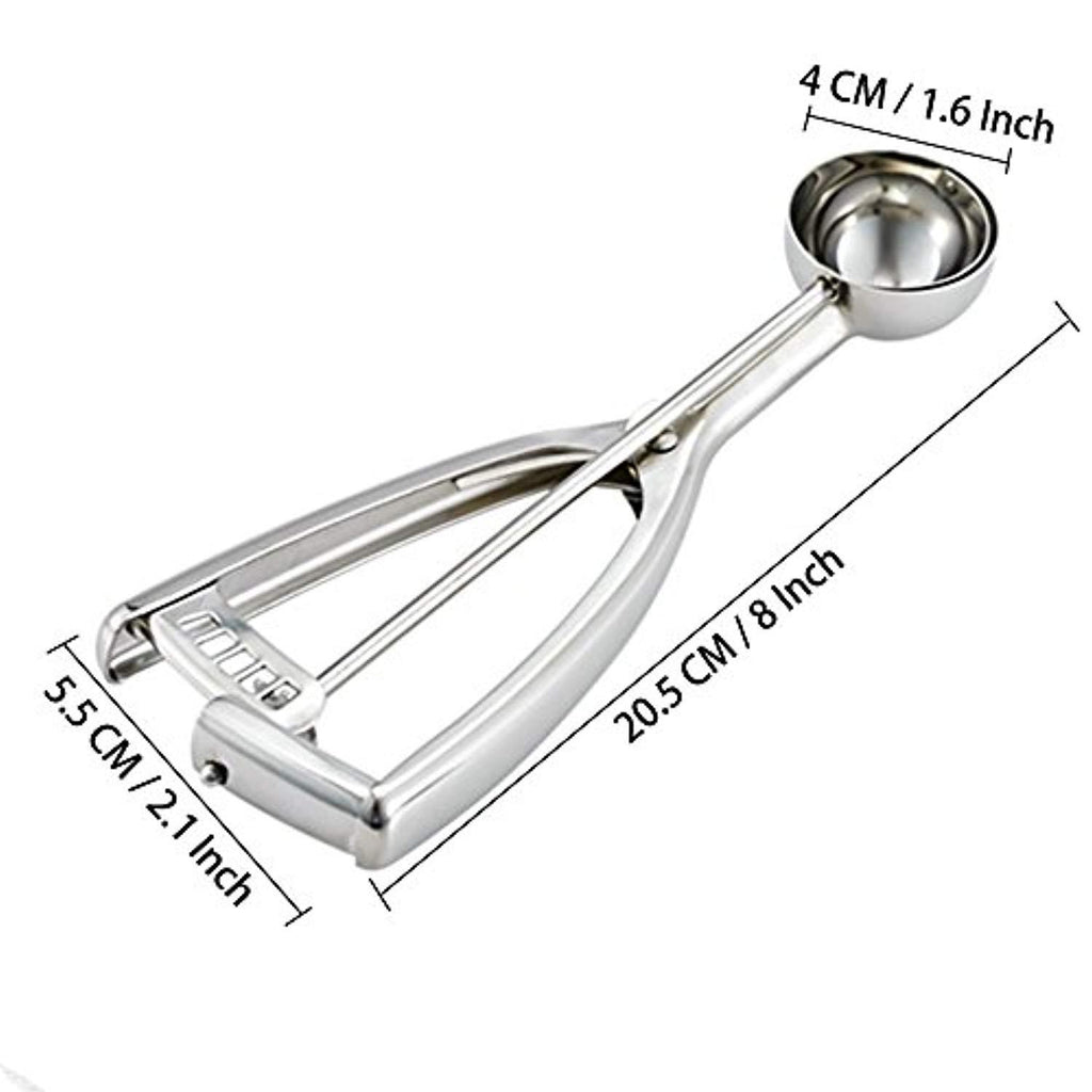• HIGH QUALITY, SELECTED 18/8 STAINLESS - The small cookie scoop with trigger have gleaming surface, is made of food grade 18/8 stainless steel. We would be confident of strength, durability and food safety. These superior scoops never contain harmful chemicals or others to leave into your food.