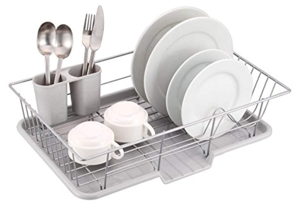 Set includes one dish rack, one plastic cutlery caddie, and one drain board