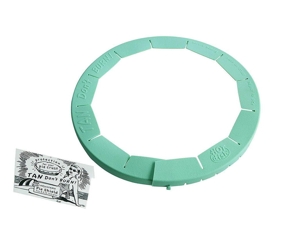 Tan, don’t burn your beautiful pie; the Talisman Designs Adjustable Pie Shield protects your pie crust while baking so the center gets a nice golden glow but the edges don't burn